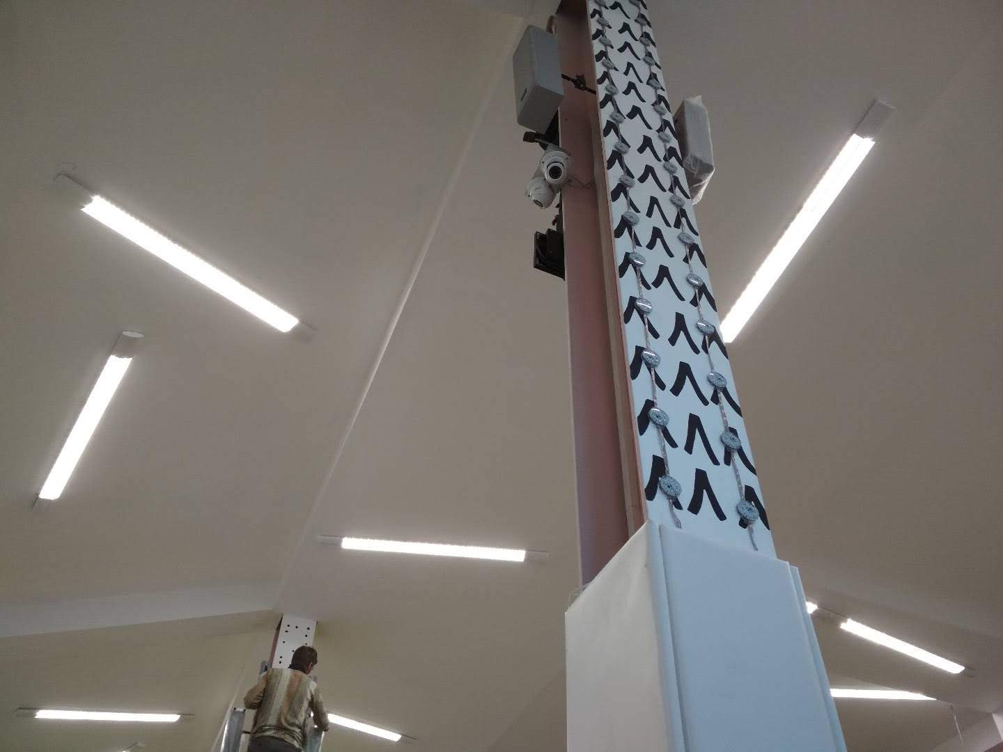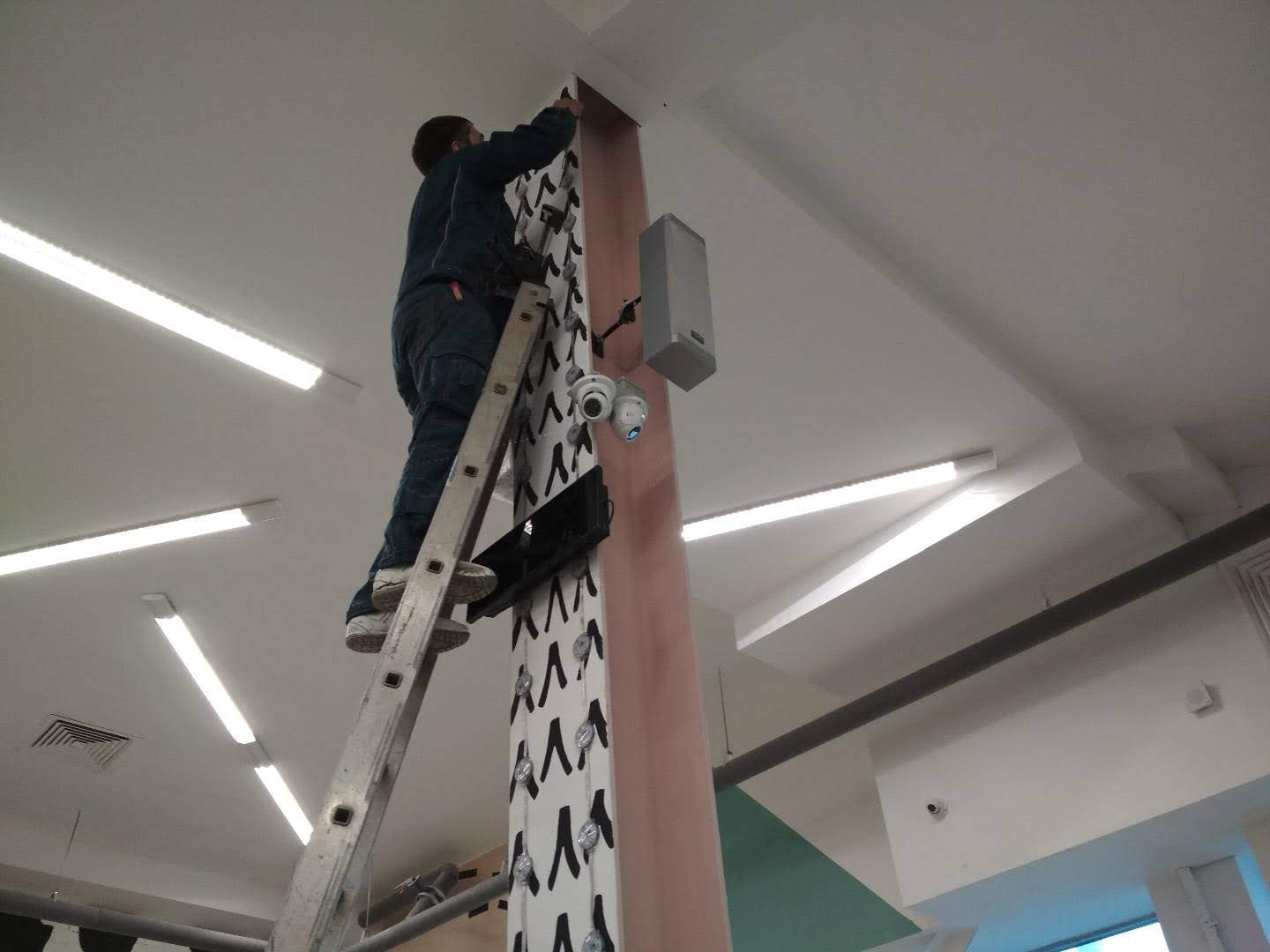 В "Батутной Арене" ТРК Мегаполис установили систему видеонаблюдения на 20 IP видеокамер с разрешением 2Мп. Все камеры свели в ближайшую серверную на POE коммутатор. Проложили 150м оптоволокна до основной серверной, где установили Domination. Особенностью данного объекта было изготовление не стандартных кронштейнов для видеокамер.